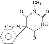 | 释义 | 甲苯比妥 C13H14N2O3=246.27 CAS-115-38-8 5-乙基-1-甲基-5-苯基-2,4,6(1H,3H,5H)-嘧啶三酮。 5-Ethyl-1-methyl-5-phenyl-2,4,6(1H,3H,5H)-pyrimidinetrione. 5-乙基-1-甲基-5-苯巴比土酸。 5-Ethyl-1-methyl-5-phenylbarbituric acid. 抗惊厥药,镇静药。 Methylphenobarbital,Mephobarbital,Mebaral,Menta-Bal. INN(Methylphenobarbital),BAN(Methylphenobatbitone),USAN,USP.