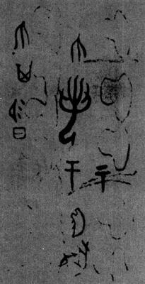 【简介】: 在研究甲骨文书刻问题上,有的专家认爲是先用毛笔书写,而后用刀契刻而成的;大多数专家则认爲是直接契刻在龟甲或兽骨上的。今日从出土的大量甲骨中,可见到少数的甲骨上有朱书或墨书的痕迹(有的是先书朱墨,后契刻的;有的是刻后涂朱墨的)。从这些少数的朱书或墨书的甲骨上,我们可以淸楚地看到殷商时代用毛笔所作的书法艺术的眞貌了。图见郭沫若主编《甲骨文合集》第2册332页。另《合集》第9册3462页,另《甲骨文字甲编》870、2636、2940等。