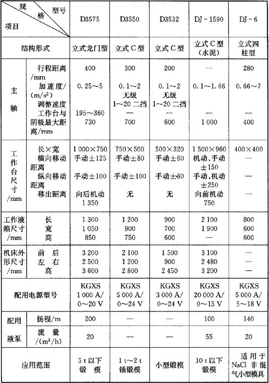 | 释义 | 电解加工 (一)电解加工的原理、特点及应用(表5.6-24) 表5.6-24 电解加工的原理、特点及应用 图5.6-18 表5.6-28 型腔电解加工机床规格