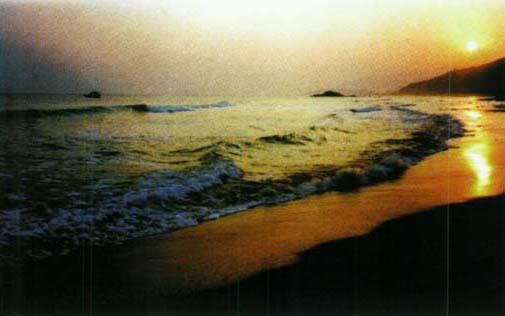 神州半岛位于万宁市东沃镇的东南面,距万城镇约30公里。它三面环海,一处连陆,面积24平方公里。神州半岛的海滨崖石有圆顶的、尖头的、方形的,有像人的,有像物的,可谓千奇百态,有“石头公园”之称。神州半岛的石岛有一巨石酷似公鸡,高约五丈,昂首凝视大海,一幅维妙维肖的雄鸡破晓之势。石公鸡旁有一黑色巨石,一半浸没海中,露出水面部分像一海龟的头,潮涨潮落如海龟时隐时现地嬉水海中。 离石岛不远处的屋子湾是几百米长的峭壁,其中的戏台石是一块伸向海中的方形巨石,平坦如席,约有160平方米,很像一个巨大的戏台。戏台石下是龙王洞。戏台石上面是颇负盛名的宰相石,其石高出人头,形似宰相戴著头冠,两旁各有一条高达两丈的旗杆石,顶天立地,昭示人间。在靠近中标岭的南端有马达头,它一侧是大海,深不可测;一侧是峭壁,高不可攀。高处的猴子石如猴子观海,高崖上的人头石有嘴有鼻,有耳有目,宛如一幅豪放的渔民肖像。