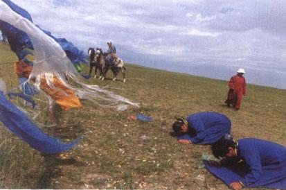 敖包是蒙古语,意为堆子或鼓包。 祭敖包是蒙古民族盛大的祭祀活动之一。敖包通常设在高山或丘陵上,用石头堆成一座圆锥形的实心塔,顶端插著一根长杆,杆头上系著牲畜毛角和经文布条,四面放著烧柏香的垫石;在敖包旁还插满树枝,供有整羊、马奶酒、黄油和奶酪等等。祭祀时,由喇嘛焚香点火,颂词念经。牧民们都围绕著敖包,从左向右转三遭,求神降福。 蒙古族牧民沿袭祖先的原始宗教信仰,以为山的高大雄伟,便有通往天堂的道路;高山又是幻想中神灵居住的地方。因而便以祭敖包的形式来表达对高山的崇拜,对神灵的祈祷。 锡林郭勒盟是祭敖包历史遗存保存较为完整的地区。 由于蒙古族牧民各地区的风俗习惯不同,祭敖包的形式各异,一般都是在农历五月下旬六月上旬,有的地方在农历七、八月。 此时正值水草丰美、牛羊肥壮的季节。 祭祀时,非常隆重、热烈,几十里、上百里远的牧民们都要坐著勒勒车,骑马或乘汽车、拖拉机携带著祭品赶来敖包处。 祭敖包一般在日出之前开始,仪式隆重、严肃。祭敖包的人们一般要从西南方向登上敖包山,由西向东绕著敖包顺转(顺时针)一圈,并在敖包正前方香案前叩拜后将带来的石块添加在敖包上,用柳枝条和五色哈达、彩旗、禄马等将敖包装饰一新。  转山时的牧民祭敖包 |