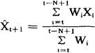 在t时期计算N个时期的加权移动平均数的时候,一般的预测公式可写成: