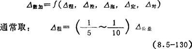 | 释义 | 程序编制中的误差 程序编制误差Δ程由三部分组成。即: Δ程=f(Δ逼,Δ插,Δ圆) (8.5-129) 式中 Δ逼为采用近似计算方法逼近零件轮廓所产生的误差;Δ插为采用插补段(直线,圆弧,或抛物线等)逼近用近似方法描述的轮廓线所产生的误差;Δ圆为将小数脉冲圆整成整数脉冲所产生的误差。 零件图给出的公差Δ公差允许分配给Δ程的只有一小部分。因为数控机床加工误差Δ数加中还含有其它误差成分。主要有控制系统误差Δ控,拖动系统误差Δ拖,零件的定位误差Δ定和对刀误差Δ对等,即