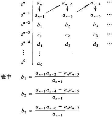 | 释义 | 稳定性分析 (1)定义 处于平衡工作状态的系统,受到扰动作用后,其输出量偏离原来的平衡工作状态,当扰动取消后,如果系统能以足够的准确度逐渐恢复到原来的平衡状态,则称系统是稳定的,或说具有稳定性的。否则,称系统是不稳定的,或说不具有稳定性的。 稳定性是系统去掉扰动以后,自身的一种恢复能力,所以是系统的一种固有特性,它只取决于系统本身的结构和参数,而与初始条件和外作用无关。 (2)系统稳定的充分必要条件 系统稳定的充分必要条件是,系统特征方程的根(即闭环传递函数的极点)全部位于s平面的左半平面。 (3)劳斯稳定性判据 应用劳斯判据判别稳定性分两步进行:第一步,首先根据系统的特征方程编制一个行列表(称劳斯行列表);第二步,根据劳斯表第一列的元素符号来判别系统的稳定性。 劳斯行列表的编制 设系统特征方程为 ansn+an1sn-1+…+a1s+a0=0 (5.4-1) 当an>0时,劳斯表按如下方法编制