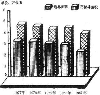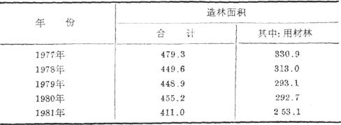资料来源:《中国统计年鉴》(1981年)。 我国造林面积 1977-1981年