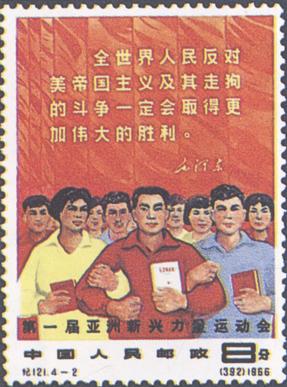 (1)8分 热爱毛主席 800万枚 (2)8分 团结反帝 500万枚 (3)8分 增进友好 500万枚 (4)8分 互相促进 500万枚 (1)-(4) 4枚全 |