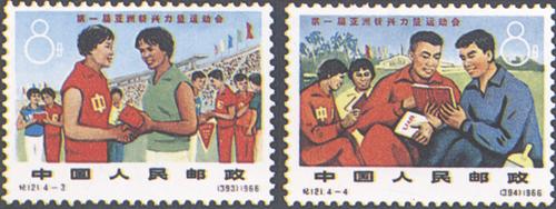 | 释义 | 第一届亚洲新兴力量运动会 发行日期:1966年12月31日 齿孔度数:11 印刷版别:影写版 图幅:(1)50.5×36;(2)36.5×50;(3)(4)36.5×26 全张枚数:(1)35(5×7);(2)35(7×5);(3)(4)50(5×10) 设计者:万维生、陈晓聪、李大玮 印刷:北京邮票厂