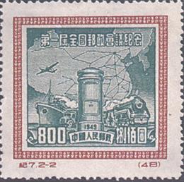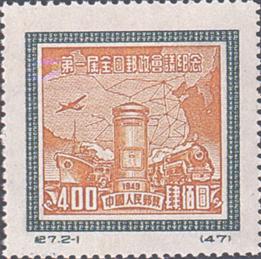 (1)400元 邮筒、交通工具及地图 105万枚 (2)800元 邮筒、交通工具及地图 237.5万枚 (1)-(2) 2枚全 再版发行日期:1955年1月10日 印刷:上海市印刷一厂 齿孔度数: