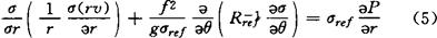 (4)式是可解的非线性方程,其右端位涡P的等熵梯度可看作是强迫函数。 结合适当边界条件,它表示P与v的可逆关系,如设fLocp>0,则变为椭圆型方程,问题适定精确可解。 进一步设fLOC≈f+ξθ≈f.R≈Rr,e,f(θ).σ=σr.e.f(θ),则(4)式化为准地转近似的等熵坐标形式