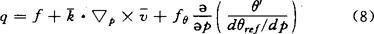 θ′是对θref(p)的偏差。 在绝热和无摩擦条件下,q随同不考虑垂直运动的水平地转气流近似守恒。q在等压面上的变化近似地与P在等熵面上的变化成比例: