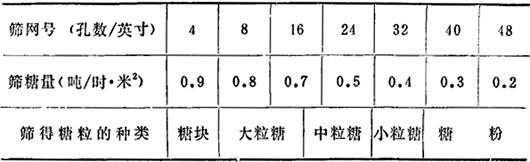 3.筛网规格与筛糖量 所用筛网规格与筛糖量的关系见表6-70。 表6-70 筛网规格与筛糖量的关系