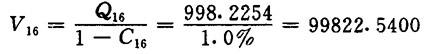 【已知】 C16=1.0% Q16=998.2254 V16=99822.54 C17=2.0% C18=0.8% 一段CX筛尾浆率α9=10%
