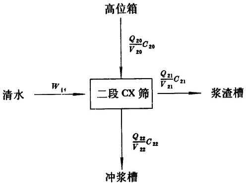 2.高位箱平衡 【已知】 C17=2.0% Q17=99.8225 V17=4991.1250 C20=1.0% 二段CX筛排渣率α10=2.0% (对一段CX筛进浆量)C19=2.5% 【计算】 Q19=Q16α10=19.9645