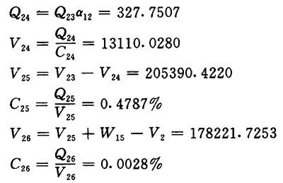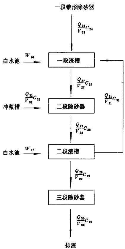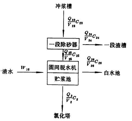 【已知】 C21=C19=2.5% Q21=19.9645 V21=798.5800 Q19=19.9645 V19=798.5800 【计算】 Q19=Q21=19.9645 V19=V21=798.5800 5.一段除砂器、圆网脱水机平衡