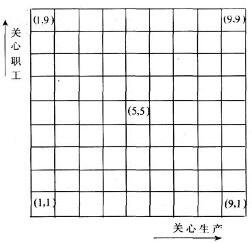 | 释义 | 管理方格理论 根据管理方格图所表明的领导者对人的关心程度和对生产(工作)的关心程度两类行为的具体组合,分析和评定领导行为类型的一种理论。 1964年,由美国德克萨斯州大学教授布莱克(R.R.Blake)和莫顿(J.S.Mouton)提出。管理方格图以横轴表示对生产的关心程度,以纵轴表示对职工的关心程度。每根轴线从1到9划分为9等分,1表示关心程度最低,9表示关心程度最高,从而形成81个管理方格,分别代表著对生产和对职工关心程度不同比例相结合的一种领导行为类型,如下图所示: