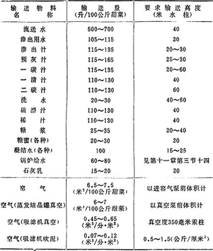 注:表中均为计算或要求值,选泵时尚须乘以系数(生产不均衡性),视情况为1.2~2.0