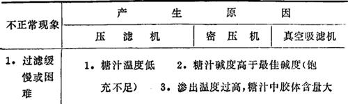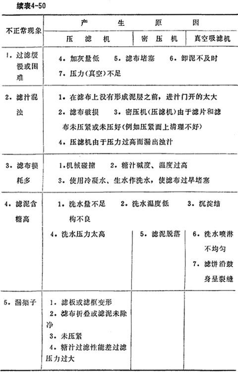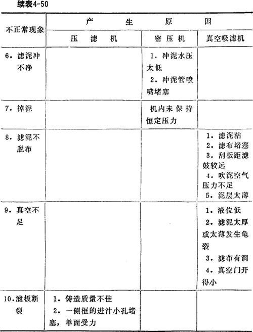 表4-50 过滤的不正常现象及其原因