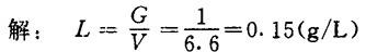 式中 L——洗后浆所带走的残碱浓度(g/L) G——每吨风干浆带走残碱量(kg/t风干浆) V——每吨风干浆带走的残液量(m3/t风干浆) 【例2】 在例1中,每吨风干浆带走残碱为1kg/t风干浆,计算残碱浓度。
