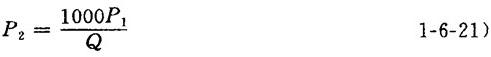 式中 P2——洗净度[g(Na2O)/L] W2——每吨风干浆中的残碱含量(g) Q——每吨风干浆所带废液量(1/t风干浆) 3.P1、P2间的相互换算 【公式】