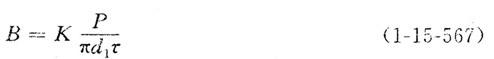 | 释义 | 纸粕辊辊轴尺寸的计算 【说明】 纸粕辊轴的尺寸主要计算或验算锁片槽的轴颈直径d和槽肩的厚度B。因为纸粕辊上锁片后轴颈轴向受力,d是轴芯最薄弱的受拉面。见图1-15-76 1.轴颈直径d 【公式】