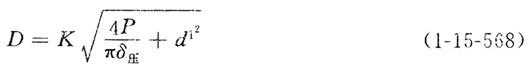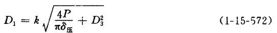 式中 D1——扇形销外径(压盘台肩内径)(m) δ压——许用压应力(Pa) D3——压盘内孔直径(m) P——剩余总压力(N) k——系数 |