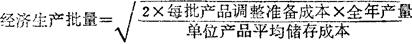指从满足需要和成本最低的要求出发确定的一定期间(通常是计划年度)每次订货量或生产量。 用于存货订购方面,叫经济订货量;用于产品生产方面,叫经济生产批量。经济订货量是指既能满足生产、销售的需要,又可使存货上花费的总成本(一般是变动性订货成本与变动性储存成本之和)达到最低时的每次订货量。每次订货批量越大,全年订货次数就越少。这样,虽然可节约订货成本,但是储存成本却增大;每次订货批量越小,全年订货次数就越多,由此引起订货成本增大,储存成本减少。 确定总成本为最低的订货批量,一般用下列公式计算:  经济生产批量是指在批量生产企业中,既能完成全年生产任务,又能使产品总成本(一般是调整准备成本与储存成本之和)为最低时的每次生产量。调整准备成本(属于固定成本性质)和储存成本(属于变动成本性质)是两个互为消长的因素。 前者,随生产批量增大、全年生产批次减少而减少,随生产批量减少,全年生产批次增加而增加;后者,随生产批量增大、全年生产批次减少而增加,随生产批量减少、全年生产批次增加而减少。确定总成本最低的生产批量,一般可用下列公式计算: