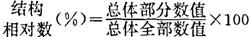 | 释义 | 结构相对指标 用以分析研究总体的各个组成部分在现象总体中的比重的相对指标。 土地现象总体可以按各种标志进行分组,将总体区分为不同性质的各部分,以部分的数值与总体数值进行对比求得比重或比率。结构相对指标一般用百分数或成数表示,各部分所占比重之和必须为100%或1。其计算公式为: