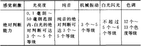 | 释义 | 绝对判断 亦称“绝对辨别”。 人对单个呈现刺激物的判断。如从颜色不同的卡片中任意抽取一张来判断其颜色,或判断一个随机发出的声音刺激的频率等。人的绝对判断能力因刺激物特点的不同而不同,对多维刺激物的绝对判断能力要明显高于单维刺激物。 人体各主要感觉通道的这一能力如表所示。 主要感觉通道的单维绝对判断能力
