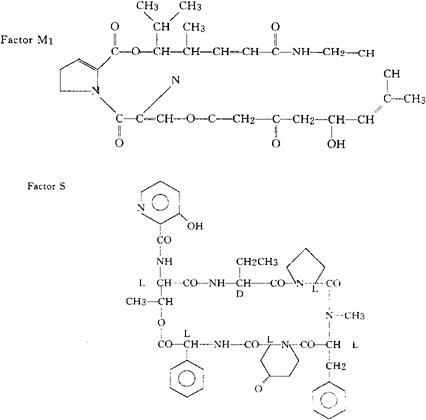 CAS-11006-76-1 由 Streptomyces virginiae产生的抗生素,有两种主要的抗生素维及尼霉素M1(M1因子)和维及尼霉素 S1(S1因子)组成的混合物。 Antibiotic produced by Streptomyces virginiae;amixture of two principal antibiotic components,virginiamycin M1(Factor M1)and virginiamycin S1(Factor S). 抗生素类药。 维及尼霉素。 Virginiamycin,Antibiotic 899,Eskalin V,Staphylomycin,Virgimycin,Stafac,SK&F7988. INN,BAN,USAN.  |
