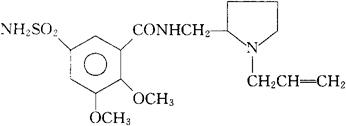 | 释义 | 维拉必利 C17H25N3O5S==383.46 CAS-66644-81-3 N-[(1-烯丙基-2-吡咯烷基)甲基]-5-氨磺酰-2,3-二甲氧基苯甲酰胺。 N-[(1-Allyl-2-pyrrolidinyl)methyl]-5-sulfamoyl-overatramide. 多巴胺拮抗药。 Veraeipride,Agrial. INN,DCF,DCIT,USAN,M1.