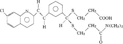 C26H27ClN2O3S2=515.08 CAS-120443-16-5 [R-(E)]-3-[[[3-[2-(7-氯-2-喹啉基)乙烯基]苯基][[3-(二甲氨基)-3-氧代丙基]硫代]甲基]硫代]丙酸。 [R-(E)]-3-[[[3-[2-(7-Chloro-2-quinolinyl)-ethenyl]phenyl][[3-(dimethylamino)-3-oxopropyl[thio]methyl]thio]propanoic acid. 3-[[(αR)-间-[(E)-2-(7-氯-2-喹啉基)乙烯基]-α[[2-(二甲氨基甲酰)乙基]硫代]苄基]硫代]丙酸。 3-[[(αR)-m-[(E)-2-(7-Chloro-2-quinolyl)vinyl]-α-[[2-(dimethylcarbamoyl)ethyl]thio]benzyl]thio]propionic acid. 抗过敏药,平喘药。 Verlukast,MK-679,L-668,019. INN,USAN.