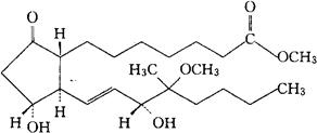 C23H40O6=412.57 CAS-88980-20-5 甲基(1R,2R,3R)-3-羟-2-[(E)-(3R)-3-羟-4-甲氧-4-甲基辛基]-5-氧代环戊烷庚酸盐。 Methyl(1R,2R,3R)-3-hydroxy-2-[(E)-(3R)-3-hydroxy-4-methoxy-4-methyloctyl]-5-oxocyclopentaneheptanoate. 11,15-二羟-16-甲氧-16-甲基-9-氧代前列腺-13-烯-1-酸甲酯。 11,15-Dihydroxy-16-methoxy-16-methyl-9-oxoprost13-en-1-oic acid methyl ester. 前列腺素类药(抗胃液的分泌),细胞免疫药。 Mexiprostil,MDL 646. INN,USAN.  |