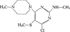 | 释义 | 美齐拉明 C11H18ClN5S=287.81 CAS-50335-55-2 4-氯-2-(甲氨基)-6-(4-甲基-1-哌嗪基)-5-(甲硫基)嘧啶。 4-Chloro-2-(methylamino)-6-(4-methyl-1-piperazinyl)-5-(methylthio)pyrimidine. 4-氯-N-(甲基-1-哌嗪)-5-(甲硫基)-2-嘧啶胺。 4-Chloro-N-(methyl-1-piperazinyl)-5-(methylthio)-2-pyrimidinamine. 镇吐药,肌肉松弛药和精神抑制药。 Mezilamine,O 6553. INN,DCF,USAN.