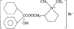 C21H32BrNO3=426.39 CAS-561-43-3 溴化2-[(2-羟甲基)-1,1-二甲基]吡咯烷鎓α-苯基环己烷甘醇酸酯。 2-[(2-Hydroxymethyl)-1,1-dimethyl]pyrrolidiniumbromide α-phenyl cyclohexaneglycolate. 溴化2-[l-(环己基羟苯基己酰)氧]甲基]-1,1-二甲吡咯烷鎓。 2-[[(Cyclohexylhydroxyphenylacetyl)oxy]methyl]-1,1-dimethyl pyrrolidinium bromide. 抗胆碱药,解痉药。用于治疗胃和十二指肠溃疡,解痉。 甲海索比龙。 Oxypyrronium Bromide,Immetro, Immetropan,Vamelidine.BM 3055,BRL 556,Ld 3055. INN,JAN,USAN.  |