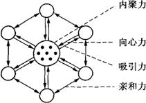 | 释义 | 群体凝聚力 群体聚集其成员的力量。 衡量群体人际关系的社会心理指标、群体成员间的情感纽带。可分为内聚力、吸引力、向心力和亲和力四个层次。内聚力,即核心分子的团结、互相支持与互相依靠,是群体的关键。有了这种内聚力才能顺利开展工作,吸引群体成员。同时,群体成员也会产生向心力,团结在核心周围,并且互相吸引,形成一种亲和力(见下图)。制约因素有:(1)群体是否满足成员的物质与精神需要,即能否代表成员的利益并在为成员谋利益中逐步实现群体目标;(2)群体对待成员是否公平、机会均等,即能否使每个成员都各尽所能,心情舒畅地为群体工作并获得回报;(3)群体内有无良好的人际关系和心理气氛;(4)群体是否有较稳定的社会地位;(5)群体成员是否与群体价值目标一致;(6)群体成员对群体是否有肯定评价;(7)群体成员在群体中扮演的角色、具有的地位是否稳定。 还受群体规模、成员沟通方式、成员的相似性与互补性、合作与竞争等因素的制约。高凝聚力的群体往往具有以下特征:(1)作为群体成员的自豪感;(2)对其他群体成员的喜欢;(3)群体帮助个人实现其理想与目标。 其大小会影响群体工作效率及其发展程度。