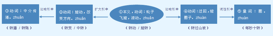 | 释义 | ![]() 〈口〉 (轉) (轉) ❶旋转。可重叠。常作带宾、带补谓语。 ~门把儿|~眼珠儿|~~后轮|车轮~得很快|风车~起来了,一直~到风停的时候|风向标坏了,~不动了|前轮~了三圈,后轮才~了一圈|齿轮还~着呢。 ❷绕着某物移动,打转。可重叠。常作带宾、带补谓语。 ~圈子|~弯儿|他们武艺表演完了,~着圈收钱|他们围着大树~了半天|我绕着湖边~过两圈|~了一下菜市场|~了一个公园|咱们到外边~~。 动量词。绕一圈称绕一转。常组成数量词组作补语。 我们围着广场绕了一~|驴子围着石磨不知转了多少~。 【近】 〈动〉❷绕 【词语】 转盘 转台 转向 转椅 转轴 【注意】 ❶另见zhuǎn。 ❷又读zhuǎi,指说话时故意卖弄辞藻,以显示自己的学问,如:说大白话就行,用不着转。 ❶改换方向、位置、形势、情况等。可重叠。常作带宾、带补谓语。 ~脸|一~身|孩子们灵活地~着身子|一年之内他~了两个学校|经过一场激战,我军~败为胜|天气~暖|情况~好|他不时~过身来说两句|演员把脸~向观众|他是去年~到我们医院的|快把头~过去|她胖得连脖子都~不动了|他不时~过身来说两句|向左~|向后~。 ❷把一方的物品、信件、意见等转到另一方。常作带宾、带补谓语,也可构成连动词组作谓语。 ~信件|~组织关系|~户口|我替他~了几封信,还~过一本书|请把这份上诉材料~法院处理|介绍信~过去了|请帮我把这个包裹~一下|我们已经把这些意见~给厂长了|你捎来的东西几经周折才~到我手里。 【词语】 转包 转播 转达 转发 转换 转交 转录 转卖 转让 转述 转瞬 转送 转托 转弯抹角 转危为安 转向 转业 转运 转正 【注意】 ❶另见zhuàn。 ❷又读zhuǎi,指说话时故意卖弄辞藻,以显示自己的学问,如:说大白话就行,用不着转。 字源解说 “専”(专)是“轉”(转)的本字。専(専),甲骨文 附 文言版《説文解字》:轉,運也。从車專聲。 附 白话版《说文解字》:转,用车辆运输。字形采用“车”作边旁,“专”作声旁。 引申线索 ![]() 【字族索引】 专 【同音字】 zhuǎi zhuǎn zhuàn |