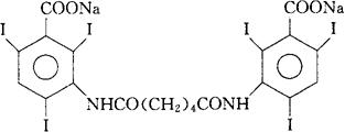 | 释义 | 胆影酸钠 C20H12I6N2Na2O6=1183.76 CAS-2618-28-0 N,N′-己二酰-双(3-氨基-2,4,6-三碘苯甲酸)二钠。 N,N′-Adipoyl-bis(3-amino-2,4,6-triiodobenzoicacid)disodium. 诊断用药。用于胆囊、胆道造影。 磺肥酸钠,胆影钠,己乌洛康钠。 Adipiodone Sodium,Iodipamide Sodium,Bilignost.胆影酸钠注射液(胆影钠注射液)。 USAN,MI.