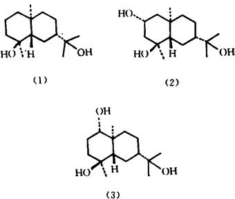 | 释义 | 臭灵丹 【概况】: 异名 狮子草(《滇南本草》),臭灵丹草(《中国药典1977年版》),臭叶子(《昆明中草药》),归经草、大黑药(《云南中草药》),鹿耳林(《贵州草药》),六棱菊(《浙江药用植物志》)。 基源 为菊科六棱菊属植物翼齿六棱菊的全草或叶。 原植物 翼齿六棱菊Laggera pterodonta(DC.)Benth.(Blumea pterodonta DC.) 历史 始载于《滇南本草》。 《植物名实图考》中有飞廉1图,所绘并非飞廉,而是本品。《中国药典1977年版》亦有收载。 形态 多年生草本、高50~100cm,全体被绿白色粘性腺毛和柔毛,有恶臭。茎具羽状齿裂的翅。 叶无柄,中部叶片倒卵状椭圆形,长7~10cm,宽2~3.5cm,基部渐狭,沿茎下延成茎翅,两面疏生柔毛杂以腺体;上部叶渐小,叶片倒卵状长圆形。头状花序在枝顶排成总状或近伞房状的大型圆锥花序,花序梗密被腺状短柔毛;总苞近钟形,长约8mm,总苞片7层,外层长圆形,边缘干膜质,背面被腺状短柔毛,内层上部有时紫红色、线形,最内层常丝状;缘花雌性,花冠丝状;中央两性花管状,裂片背面有乳头状突起。瘦果近纺锤形,长约10mm,有10棱,被白色长柔毛;冠毛白色,易脱落。 花果期4~10月。(图见《中国植物志》.第75卷.49页.图版8∶6-10) 生境与分布 生于空旷草地或山谷疏林中。分布于湖北、广西、四川、贵州和云南。 中南半岛、印度及非洲也有分布。。【生药】: 采集 6~7月采收叶,阴干。 【化学】: 从全草中分离和鉴定了14个化合物。 其中有3个新成分。为臭灵丹二醇(Pterodondiol,4β,11-二羟基-对映-桉烷)(1)、臭灵丹三醇甲(Pterodontriol A,2α,4β,11-三羟基-对映-桉烷)(2)和臭灵丹三醇乙(PterodontriolB,1α,4β,11-三羟基-对映-桉烷)(3)。