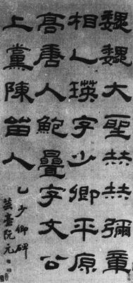 | 释义 | 节临乙瑛碑轴 【简介】: 淸·阮元书。纸本。隷书。凡四行,共三十七字。刊于日本《明淸书道图说》。