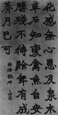 然而,有得也会有失。原碑秀劲丰正,又奇肆多变,结构严整而自然和谐,用笔朴实直率,善展善收,乃北碑上品。赵之谦所临,用笔收展不利且重複过多,更有笔力不足及妩媚有余之弊。两者相较便觉赵字有所逊色了。 |