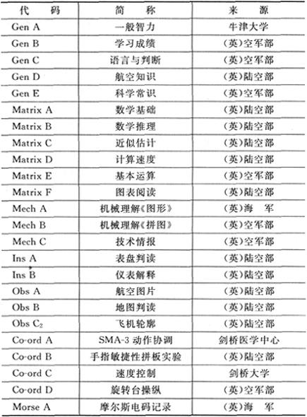 英国皇家空军飞行员选拔心理测验。鲍特等人1941年研制。