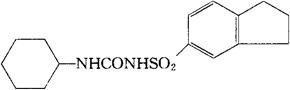 | 释义 | 茚磺环己脲 C16H22N2O3S=322.42 CAS-451-71-8 1-环己基-3-(2,3-二氢-5-茚基磺酰)脲。 1-Cyclohexyl-3-(5-indanylsulfonyl)urea. 降血糖药。 格列己脲。 Glyhexamide,Subose. INN,NFN,USAN,MI.