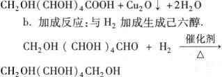 | 释义 | 葡萄糖 1.葡萄糖的组成和结构 ❶ 分子式:C6H12O6. ❷ 结构简式: CH2OH—CHOH—CHOH—CHOH—CHOHCHO或CH2OH(CHOH)4CHO,是一种多羟基醛. 2.葡萄糖的性质: (1)物理性质:白色晶体,有甜味,能溶于水. (2)化学性质: a.还原性:由于具有—CHO,能发生银镜反应和新制Cu(OH)2悬浊液反应,为还原性糖.