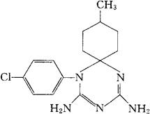| 释义 | 螺拉秦 C15H20ClN5=305.81 CAS-15599-44-7 2,4-二氨基-5-对氯苯基-9-甲基-1,3,5-三氮杂螺[5,5]十-碳-1,3-二烯。 2,4-Diamino-5-(p-chlorophenyl)-9-methyl-1,3,5-triazaspiro[5,5]undeca-1,3-diene. 抗寄生虫药。 螺三嗪。 Spirazine,Spirotriazine. INN,NFN,USAN.