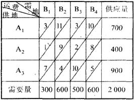 物资调运问题的特殊解法。 由于这种方法的主要步骤是在物资运输平衡表上进行的,故称表上作业法。举例说明,有三个供应量分别为700、400、900吨甲种物资的供应点,往四个需求量分别为300、600、500、600吨甲种物资的需求点发送物资的调运问题,其运输平衡表如下所示,该表的各行相当于供应量的约束条件,各列相当于需用量的约束条件,表中的各个方格,就是需要确定的从i供应地调运到j需要地的调运数量Xij。斜线上方数字为相应运费(元/吨)。 这种方法的思路是先用最小元素法在平衡表上找到初始调运方案;用闭回路法或位势法检验初始调运方案是否最优;如未达到最优,在闭回路上进行运量调整,再检验调整后的方案是否最优,直到得到运费最小的最优调运方案。 运输平衡表