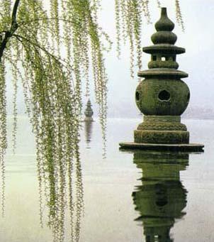 可乘7、27、16路车在少年宫广场下车,漫步白堤卽可;或在潮滨乘船至中山公园上岸卽可。 三潭印月 宋元祐四年(1089),苏轼任杭州知州疏浚西湖时,曾在苏堤望山桥至东浦桥左右两边湖中深水处,立三石塔,为禁止种植菱芡标志。 至明代筑成小瀛洲岛后,重建了三塔,塔高约两米,塔身为中空球形五圆孔,造型奇巧。明月之夜,或夜置烛火于塔中,光从洞孔透出,宛如一轮轮明月印映水中,故名为三潭印月。康熙游杭州改为三潭映月并刻碑立于小瀛洲岛上。此处湖中有岛,岛中有湖,风光独特,清张宁《三潭映月》诗有云:“片月生沧海,三潭处处明。夜船歌舞处,人在镜中行。”