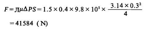 1.具有密封盒的调节阀的摩擦力计算 [说明]参见图4-6-26a0  式中 F——摩擦力(N) d——阀杆直径(m) l——阀杆的填料长度(m) μ——摩擦系数,在压力为25kg/cm2以下时μ=0.1 P——流经阀门的介质压力(Pa) 1.3——填料的拉力系数 [讨论]如图4-16-26b所示,为了减轻摩擦力,尤其是小功率伺服电机时,应采 用下式计算:  式中 p——阀杆填料中单位表面的摩擦力,在压力为25kg/cm2以下时,p值为0.025kg/cm2 2.移动闸阀所需的力计算  式中 k——考虑阀杆和阀板重量的摩擦力系数,对于直径小的闸板,k值取1.2~1.5 μ——闸阀摩擦系数,取0.3~0.4 △P——闸阀的压降(Pa)其值为当闸阀全关时在闸板两侧的压降 S——闸阀受压面积(m2)  D——闸板直径(m) 3.电动闸阀的电动机功率的计算  式中 N——电动机功率(kW) F——闸阀提升力(N),由式4-6-201求取 l——提升高度(m) η——减速箱效率(%) t——闸阀全程时间(s) [例]已知管道直径D=300mm,介质压力为9.8×105Pa,求电动闸阀的功率。 解:当闸阀全关时,闸阀的压降最大,取△P=9.8×105Pa则移动闸阀所需的力为:  取闸阀全程时伺为30s,减速箱效率η=0.65,求电机功率为:  式中 L——闸阀提升高度,等于管道直径D=0.3m 取电动机功率为1kW。 |