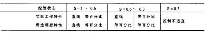 [注意]❶ 按该表选出的是阀的工作特性,还必须参考配管情况即S值(见表4-6-13)来确定阀本身的理想特性,如同时存在几种干扰,则根据经常起作用的干扰来选择。 表4-6-13 阀门的特性