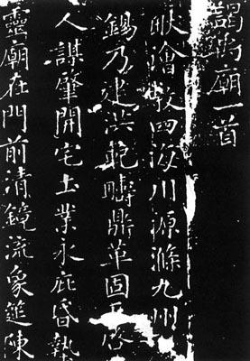 徐浩书法根底博厚,亦喜文辞,因唐肃宗的赏识,由襄州刺史君授爲中书舍人,所以,当时诏令多出于他之手,名噪一时,地位也在颜眞卿之上。但他的书法不久便遭到了书论家的批评,如吕总的《读书评》说:“徐浩眞行书固多精熟,无有意趣”。到了北宋,更遭非议,米芾乾脆指说:“唐人以徐浩比僧虔,甚失当,浩大小一伦,犹吏楷也。”所以,徐浩以书名世,大槪也是他的书风代表著官方认可的干禄书体,受到当局者的靑睐。而后人批判他的书法,主要也是针对其拘于成法,缺少个性而来的。不过他的书法并非一无可取。他早年取法欧阳询,也杂以褚遂良的波势,所以字的左右两侧疏放而有动感,与他的《不空和尙碑》等相较,《谒禹庙诗》较少“大小一伦”的匠气,在工整中尙留有一种参差的意味。 |