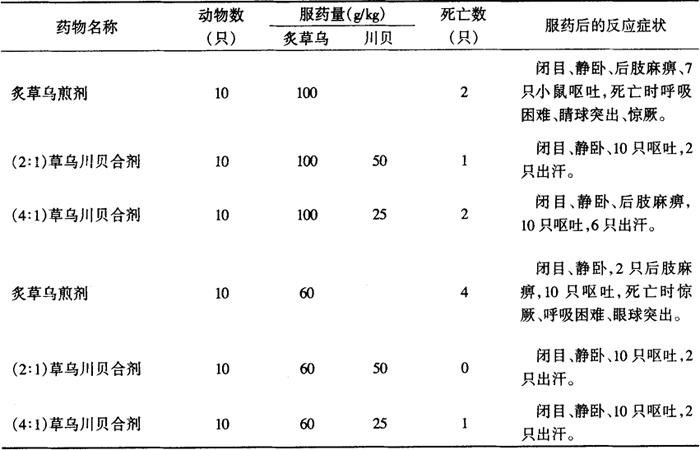 服用炙川乌煎剂及川乌川贝合剂的6个组,均无死亡,药后60g/kg炙川乌煎剂组有2只小鼠呕吐,而炙川乌剂量相同时(4∶1)川乌川贝合剂组,有1只呕吐;服用炙川乌煎剂及草乌川贝合剂的6个组中,服用(2∶1)100g/kg及60g/kg草乌川贝合剂的两组无小鼠死亡,而服用100g/kg、60g/kg炙草乌煎剂的两组及(4∶1)100g/kg、60g/kg炙草乌煎剂的两组均有小鼠死亡,并有不同程度的呕吐、出汗及后肢麻痹等毒性症状出现。 聂氏报道[5]:用生草乌9g,生半夏、瓜蒌、浙贝、白芍各9g,煎液按比例为2只家兔灌胃,均无明显的毒性相加作用。 陈氏[6]将乌头与贝母配伍给药1.5ml,每日2次,连用7d,发现小鼠外观、活动正常,白细胞、红细胞、血红蛋白、SALT及NPN均在正常范围内,肝、肾经肉眼及病理切片检查未见毒性损害。 用发光细菌法研究发现[7,8]象贝抑光率9%,与川乌配伍后抑光率12%。二者差异微小,在生物检测组中无显著意义。亦说明二者合用,毒性增加不显著。 【临床应用】 林氏[9]用川乌9g,浙贝12g,与干姜、党参、白术、白及等伍用,名日:“温中扶脾止痛血”。用于治疗虚寒胃痛等证。18例中痊愈10例,显效1例,进步6例,无效1例。林氏[10]用川乌、贝母等组成拮抗丸,用于250例湿痰喘咳、心脾不足、心悸气短等证,疗效较好,并未发现毒副作用。 古代有用乌头配贝母的金露丸《太平惠民和剂局方》治疗癥瘕积聚,现有用其配对组成复方治疗乳腺疾病[11]。 【参考文献】: 1 何国光,王锦堂,邓伯林.川乌配贝母后生物含量变化的测定.成都中医学院学报,1987;19(总222):30 2 刘源,陈馥罄,高晓山.中药十八反研究.北京:中医古籍出版社,1991:128 3 刘源,陈馥罄,高晓山.中药十八反研究.北京:中医古籍出版社,1991:130 4 云南大学中药.“十八反”研究协作组.“中药“十八反”动物实验研究.中药通报,1986,(增刊):30 5 聂伯纯.十八反研究.陕西中医学院学报,1989;12(2):43 6 陈德珍,贝叔英,朱树华,等.中药十八反对动物体重影响的初步观察.江苏中医杂志,1986;(6):26 7 沈光稳.采用发光细菌研究探讨“十八反”配伍药物的临床毒性.中医药研究,1998;14(1):10 8 杨安泰,张丽英,金彩琪,等.用光发细菌研究中药十八反.上海中医药杂志,1989;(6):2 9 林通国.中药十八反之研究.成都中医学院学报,1981;(1):48 10 林通国.中药十八反之研究.成都中医学院学报,1981;(3):58 11 苗明三.常用中药毒理学.北京:中国中医药出版社,1997:357 |